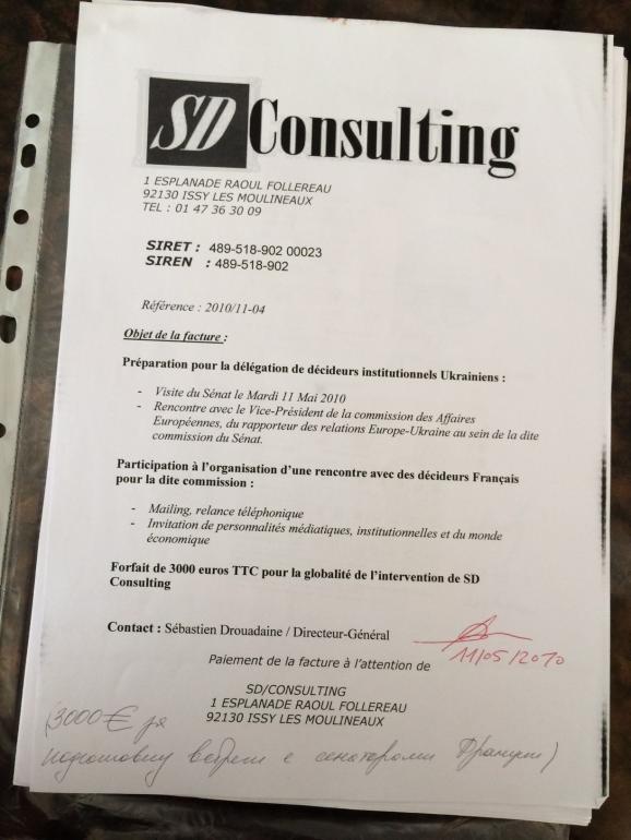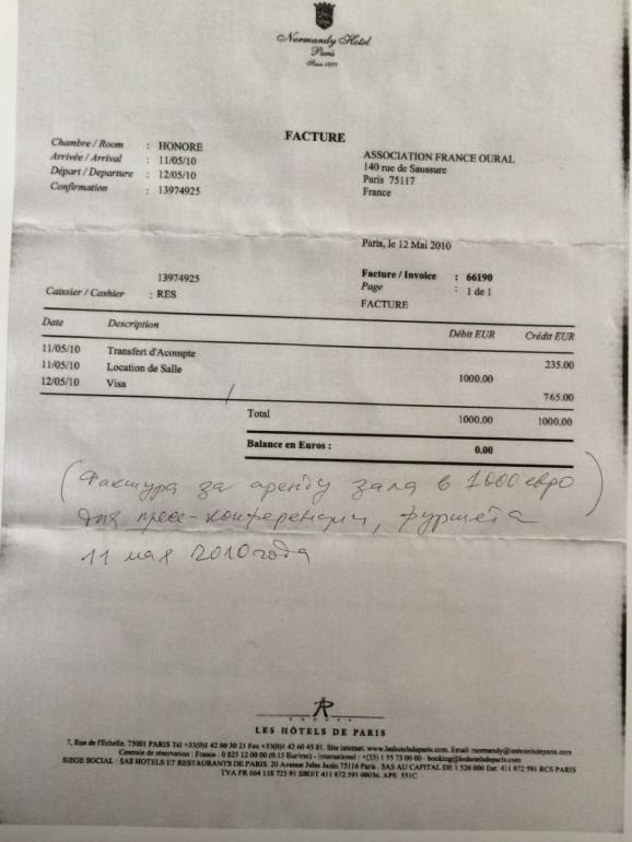 Наприклад на організацію круглого столу в Парижі, який відбувся 9-11 травня 2010 року, були витрачені десятки тисяч євро. Зокрема лише на підготовку зустрічі з сенатором та круглого столу-зустрічі з французькою громадськістю було витрачено 8 тис. євро.