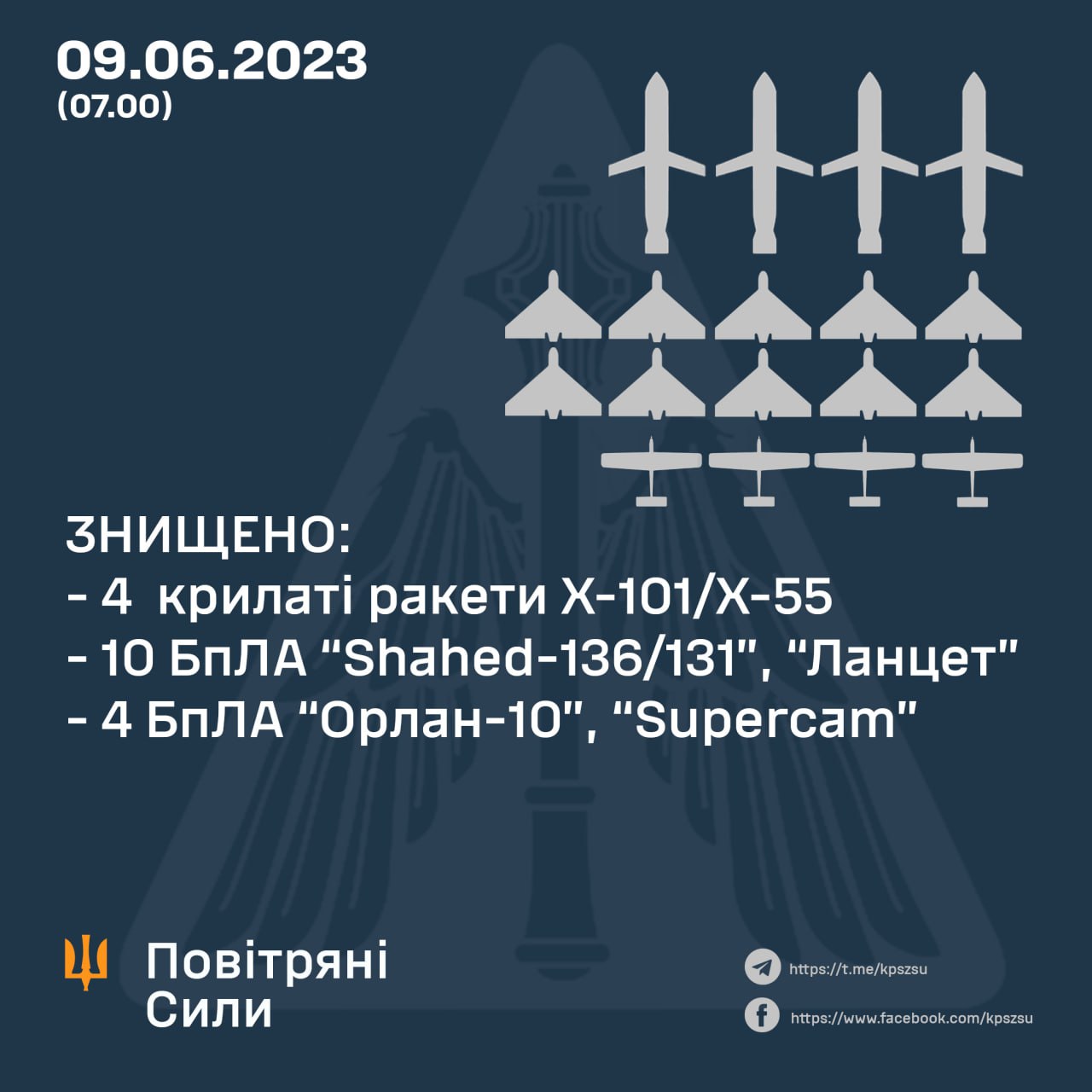 Було знищено 6 ударних та 4 розвідувальних БпЛА різних типів.