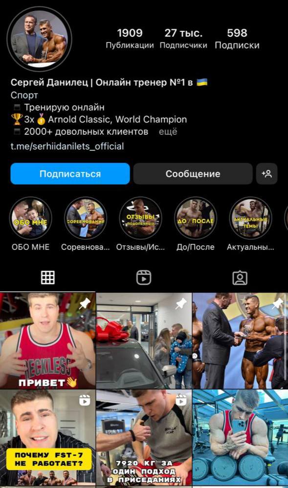 Як свідчить інформація сторінки Данильця, він є успішним тренером і сам виступає на численних змаганнях.