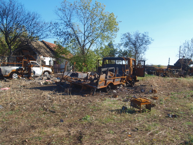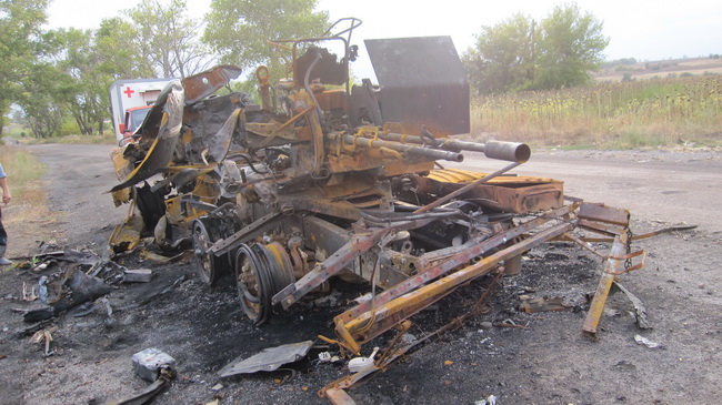 Село Червоносельское, уничтоженные автомашины батальона «Донбасс» и частей Вооруженных Сил Украины (фото Павла Нетесова)