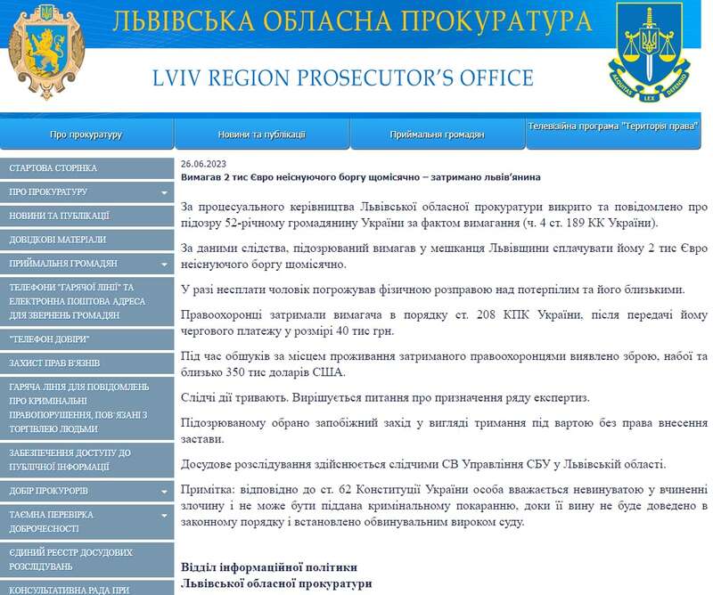 Про це у понеділок, 26 червня 2023 року, синхронно звітували у Службі безпеки України та Львівській обласній прокуратурі.