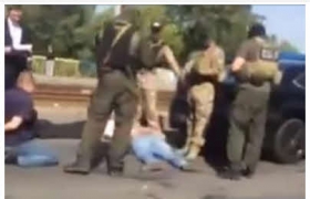 "На проспекте Курбаса в сторону Индустриального СБУ задержала людей, лежат на асфальте в наручниках", - сообщил пользователь.