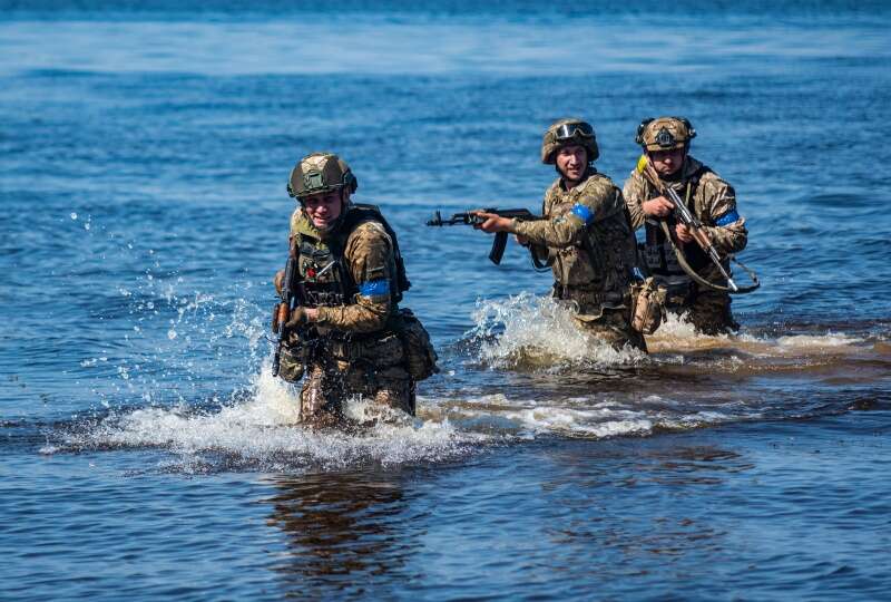 Українські військові взяли участь у тактико-спеціальних навчаннях щодо відбиття нападу ворожих диверсійних груп на узбережжі Київського моря. Там був присутній командувач Об’єднаних Сил ЗС України Сергій Наєв.
