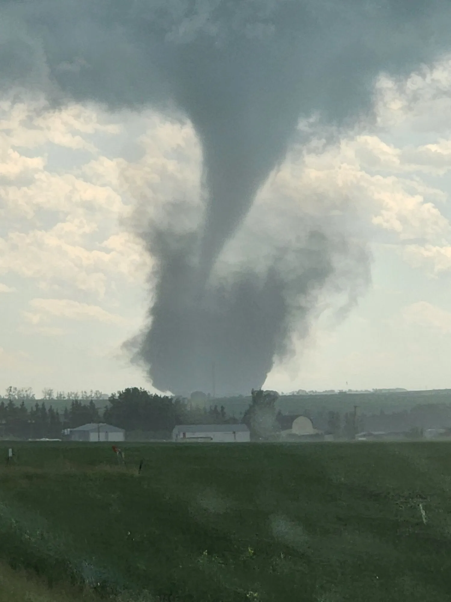 Dangerous tornado from earlier today SE of Didsbury, AB around 14:00. This was the most insane thing I’ve ever seen in my life. Thoughts are with those impacted by this storm. #abstorm pic.twitter.com/acRooTG5ir