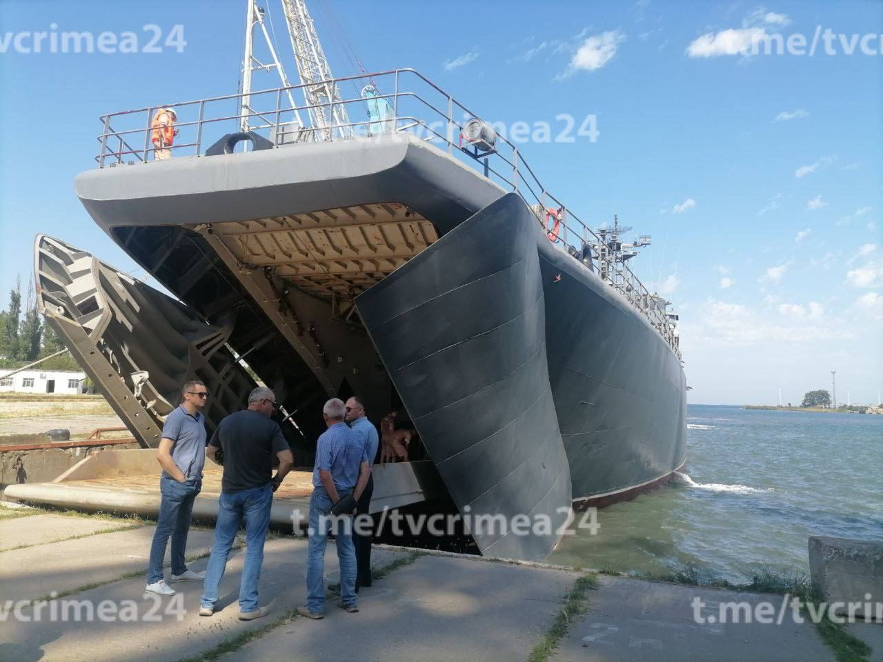 У Керчі виник великий десантний корабель ВМФ Росії. Він перевозитиме машини туристів у порт «Кавказ» у разі погіршення ситуації із пробками на Кримському мосту.