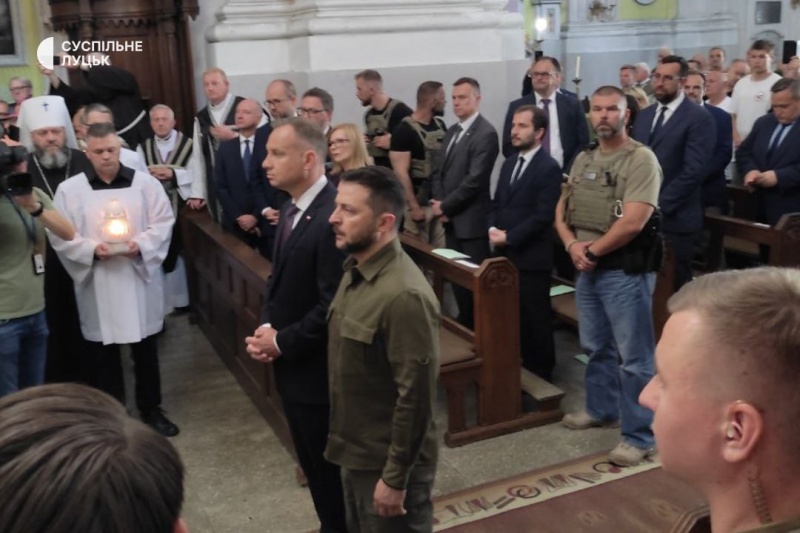 "Суспільне" повідомляє, що на месу прибув митрополит Православної церкви України Епіфаній, митрополит Луцький та Волинський Михайло, а також голова Української греко-католицької церкви Блаженніший Святослав.