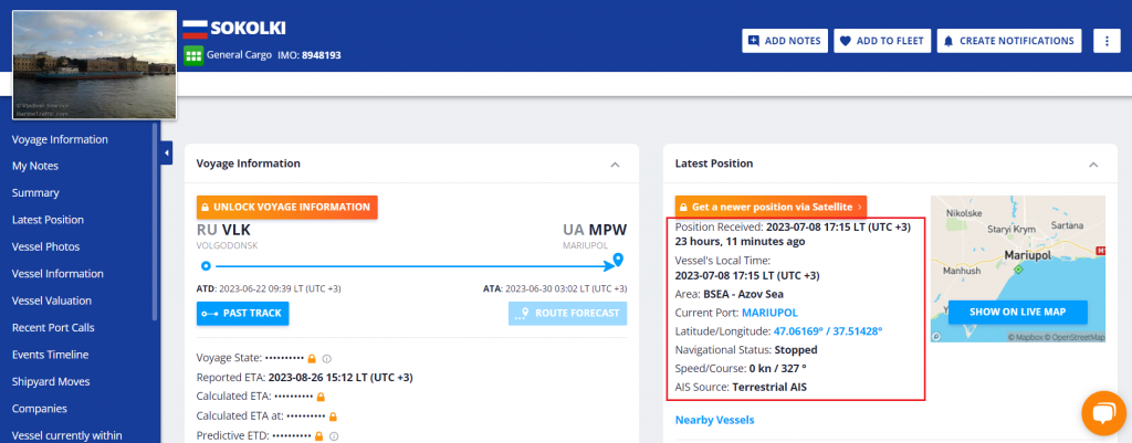 Україна застосувала санкції до цієї компанії восени 2022 року, а США та Велика Британія – у травні нинішнього. Тож не дивно, що це судно зайшло до порту Маріуполя з Волгодонську, не вимикаючи систему ідентифікації – його власникам уже втрачати майже нічого. Щоправда, лишається ще дочекатись санкцій ЄС, бо поки їх немає, – це судно може спокійно заходити у європейські порти.