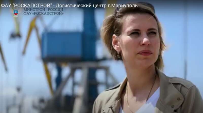 Керівниця ФАУ «РосКапСтрой» Юлія Максімова в порту тимчасово окупованого Маріуполя, весна 2023 р., скриншот з відео на YouTube
