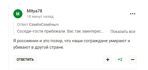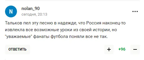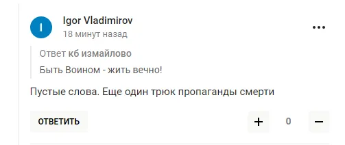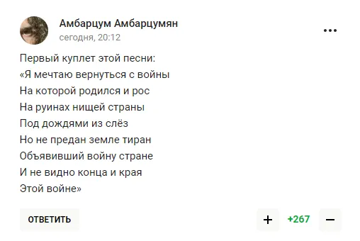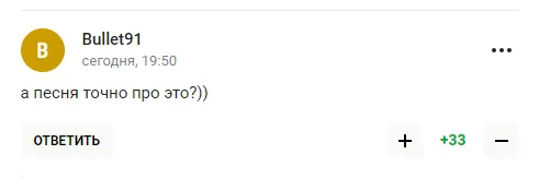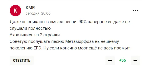 У мережі російські любителі спорту здійняли на сміх такий перфоманс від співвітчизників. Користувачі обурюються, що їхні колеги взяли рядок із пісні, яка навпаки є антивоєнною.