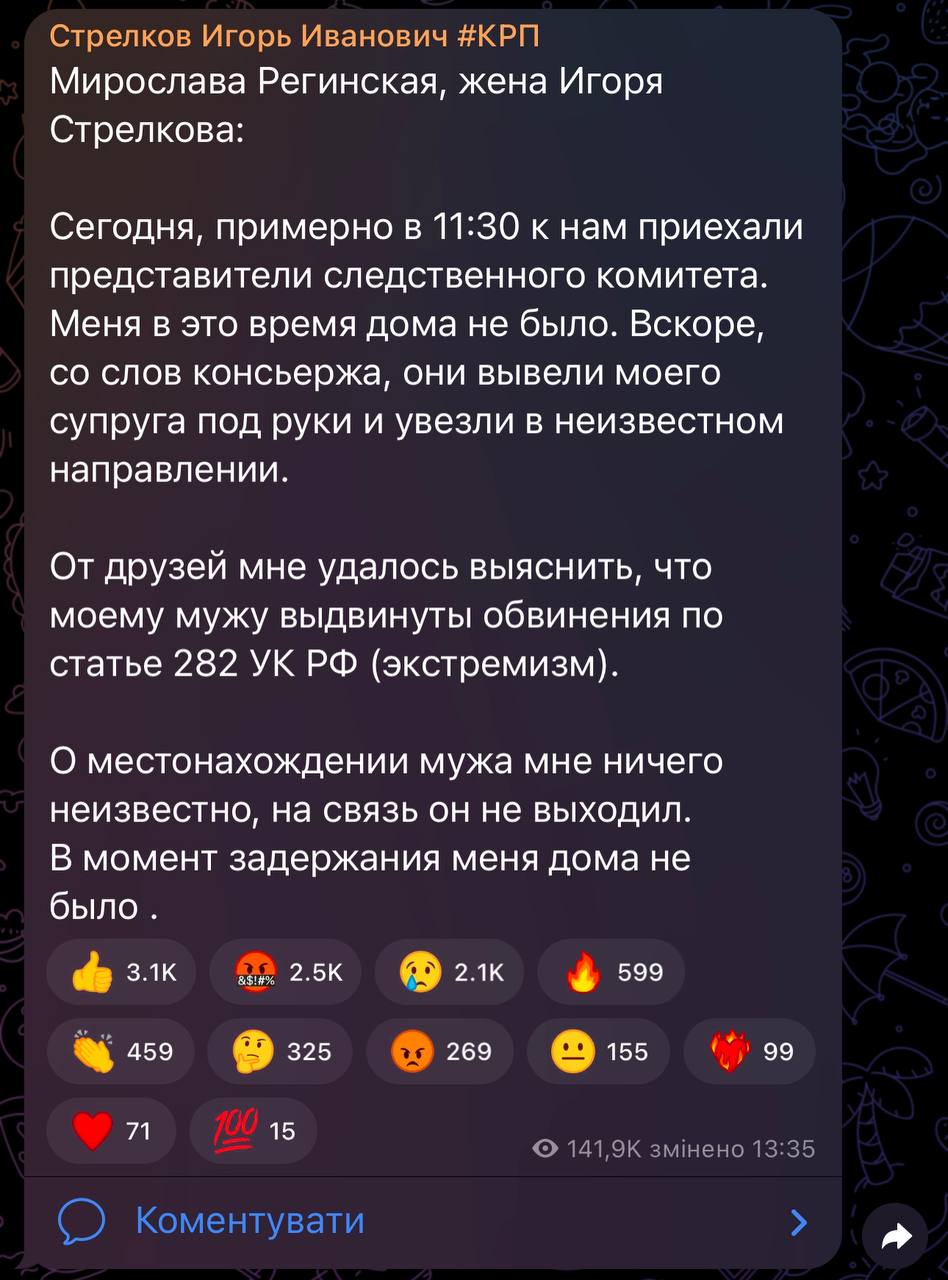 Стрєлков — усе. Його затримали за підозрою в екстремізмі.