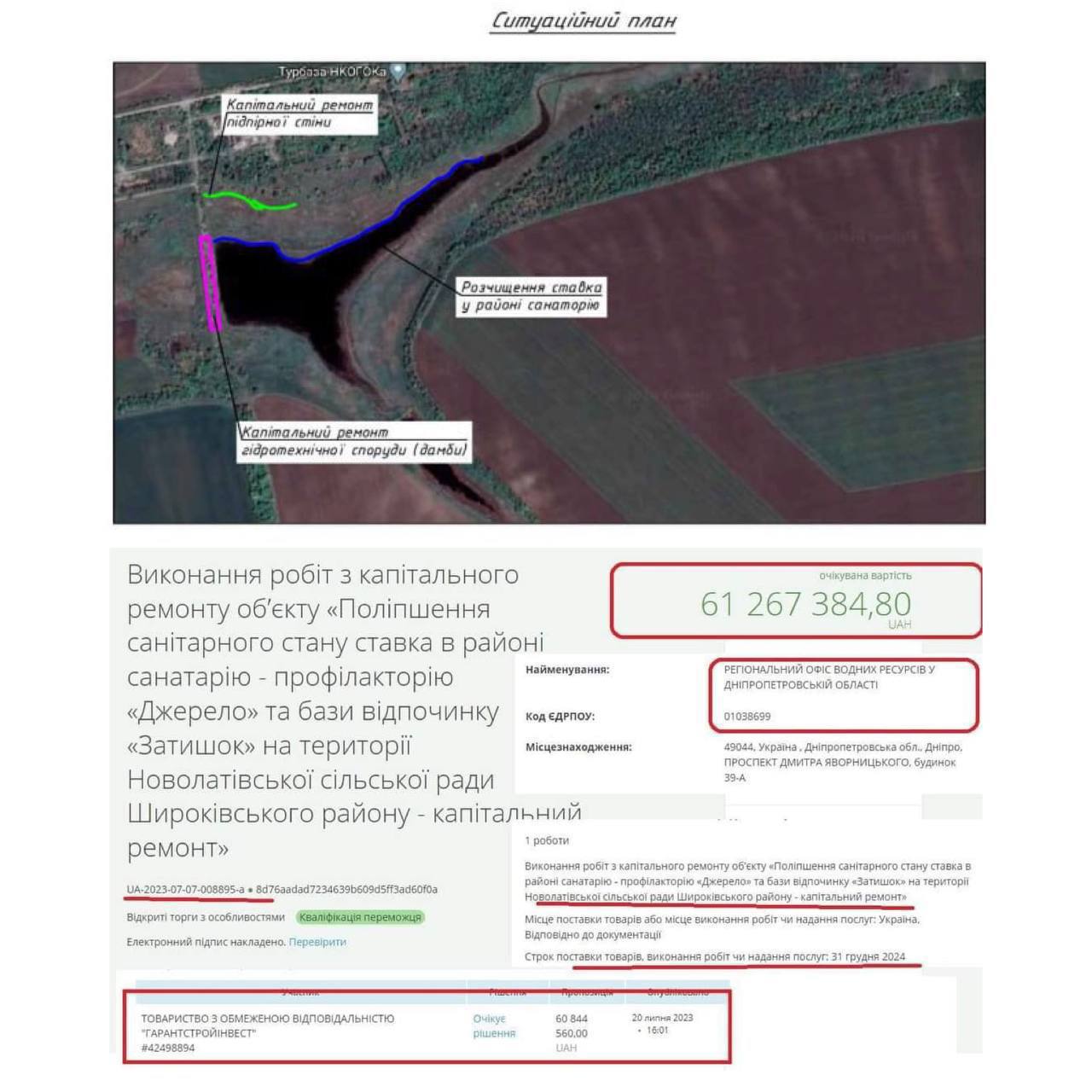 За даними тендерної документації, планується провести роботи з очищення ставка, а також капітального ремонту споруди та дорожнього покриття. Загальна сума тендеру – понад 60 млн гривень.