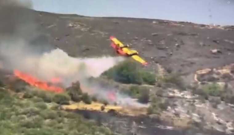 Судно рятувальників зачепило верхівки дерев у гірському районі острова після того, як було скинуто воду на вогнище загоряння.