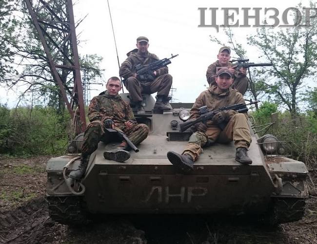 Как можно видеть по фотографиям из сотового ГРУшника, россияне "старательно играли роль луганских шахтеров-ополченцев": на их боевой технике были надписи "ЛНР", а на форме - нашивки "армия Новороссии".