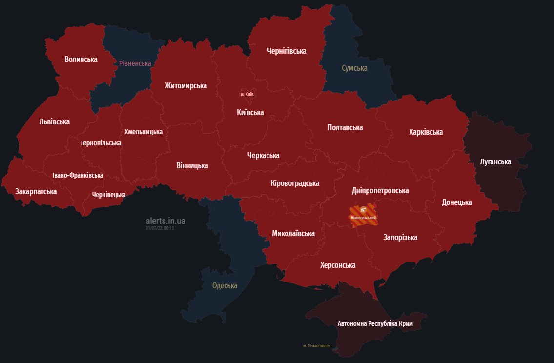 Повітряна тривога оголошена майже по всій території України
