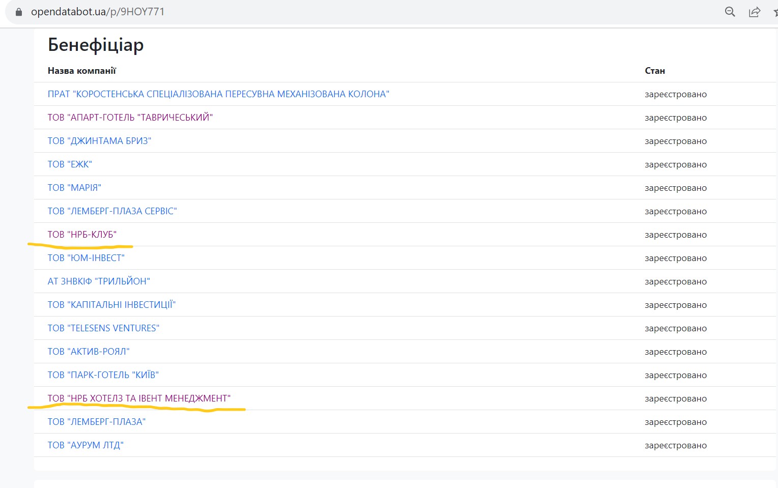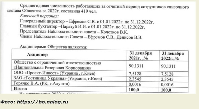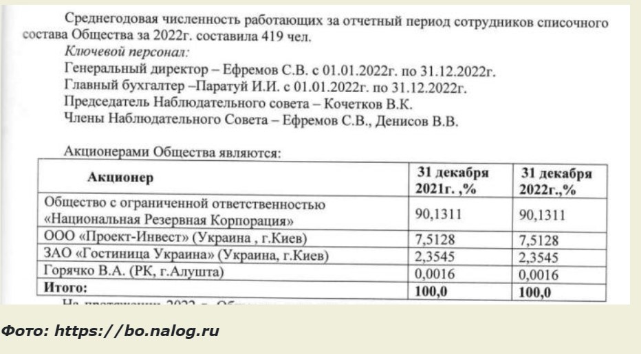 Але головне не це, а те, що 90,13% акцій АТ «Пансіонат "Море" належить ТОВ «Національна резервна корпорація», яка належить Олександру Лебедєву.