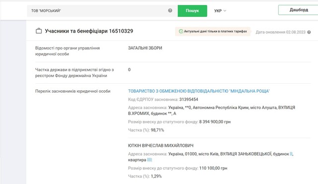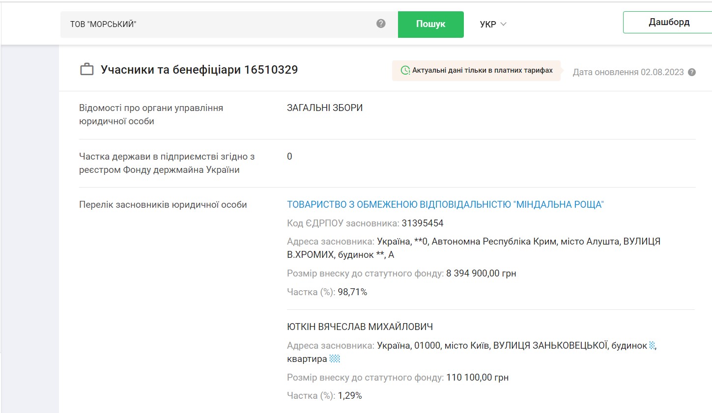 Серед таких – ТОВ «Морський», в засновниках якого значиться Юткін В’ячеслав Михайлович:
