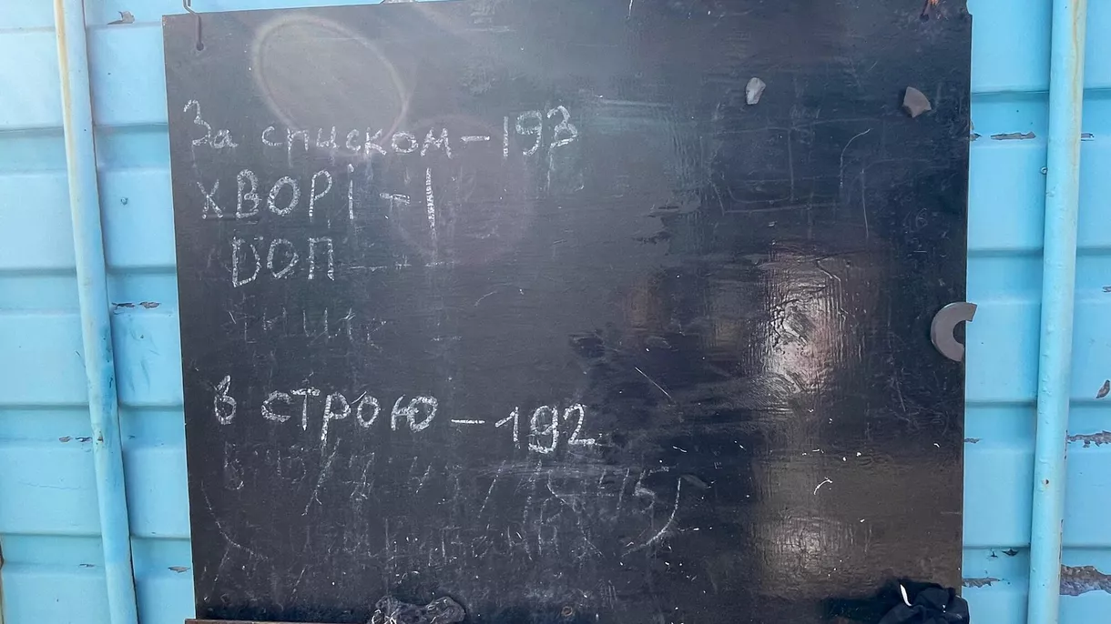 Дошка, на якій азовці занотували кількість тих, хто перебуває в бараку