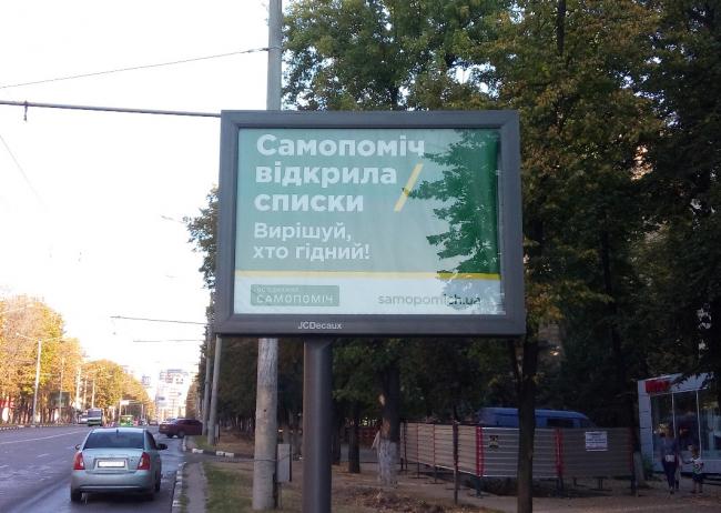 Довольно активно представлена в наружной рекламе «Самопомощь», которая рассказывает о своих открытых списках.
