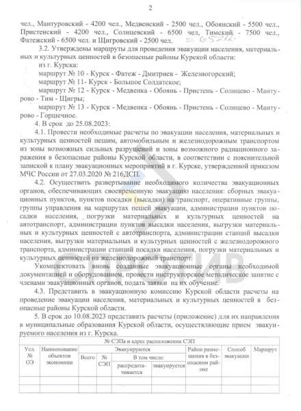 Евакуацію заплановано до таких населених пунктів, як Желєзногорськ, Велике Солдатське, Щигри та Горшечне.