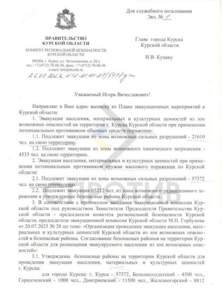 За даними підпілля, в Курській області триває підготовка до евакуації з зони ймовірного радіоактивного забруднення, на випадок аварії на АЕС. Для цього місцевій владі поставили завдання створити транспортний реєстр.