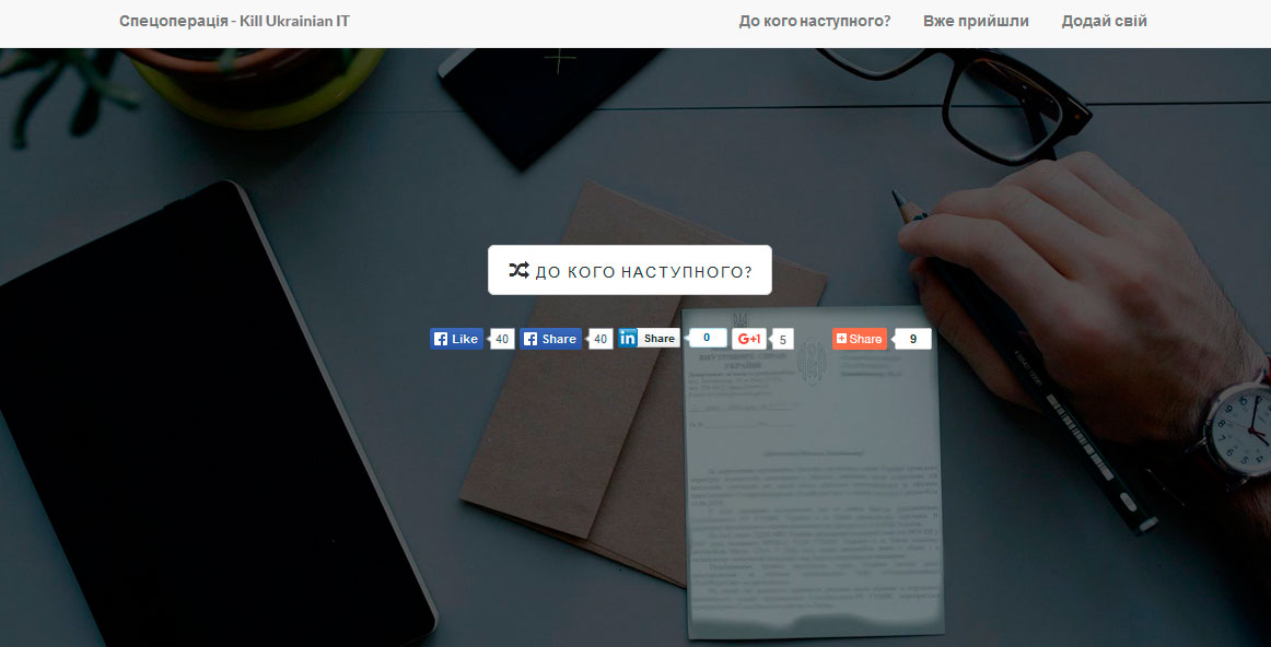 Между тем, в уанете начали появляться тематические «дзен-сайты» — агрегаторы ответов на волнующих всех без исключения вопрос: кто следующий на очереди у СБУ, МВД и иже с ними? Они одновременно и смешные, и пугающие. По сути это — рулетка, но чем дальше в лес, тем больше она напоминает русскую. Вот, например, сайт Спецоперація — Kill Ukrainian IT: