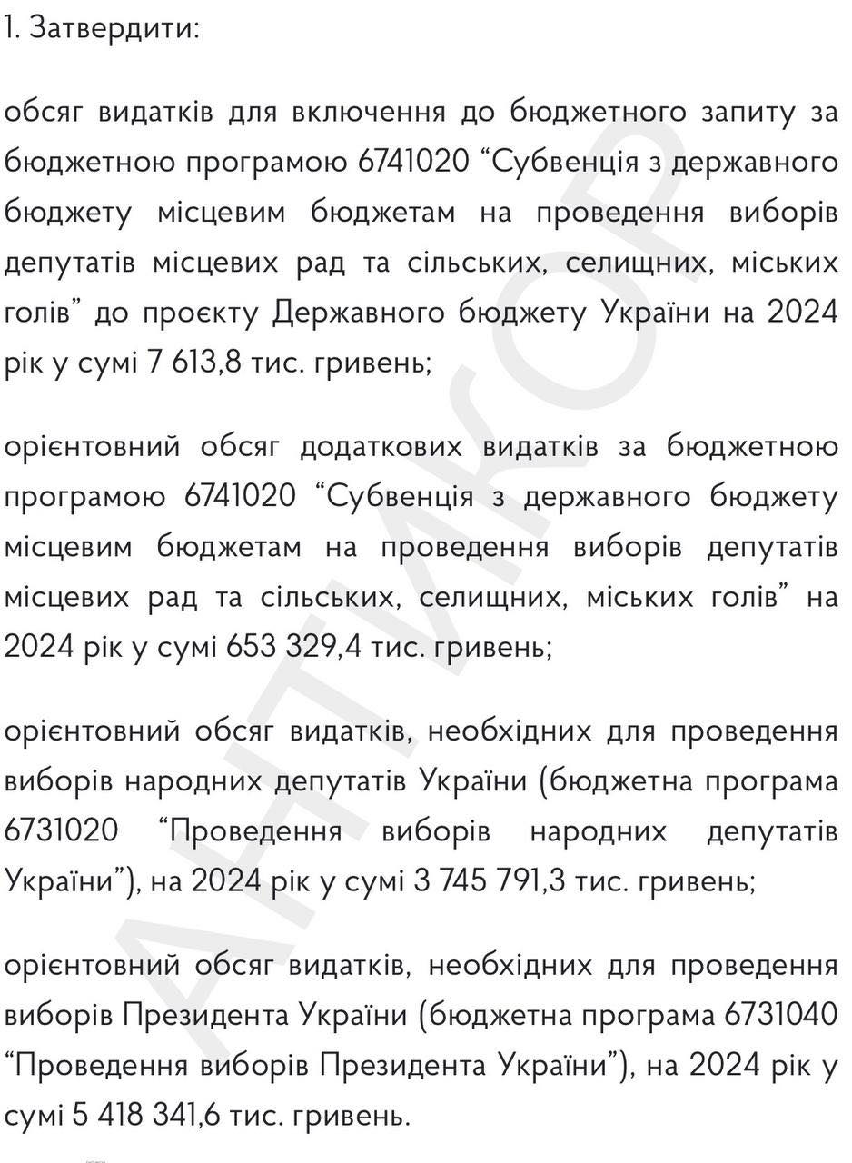 15 серпня на сайті Центральна виборча комісії з’явилася новина про те, що ЦВК затвердила орієнтовний кошторис можливого виборчого процесу у 2024 році.