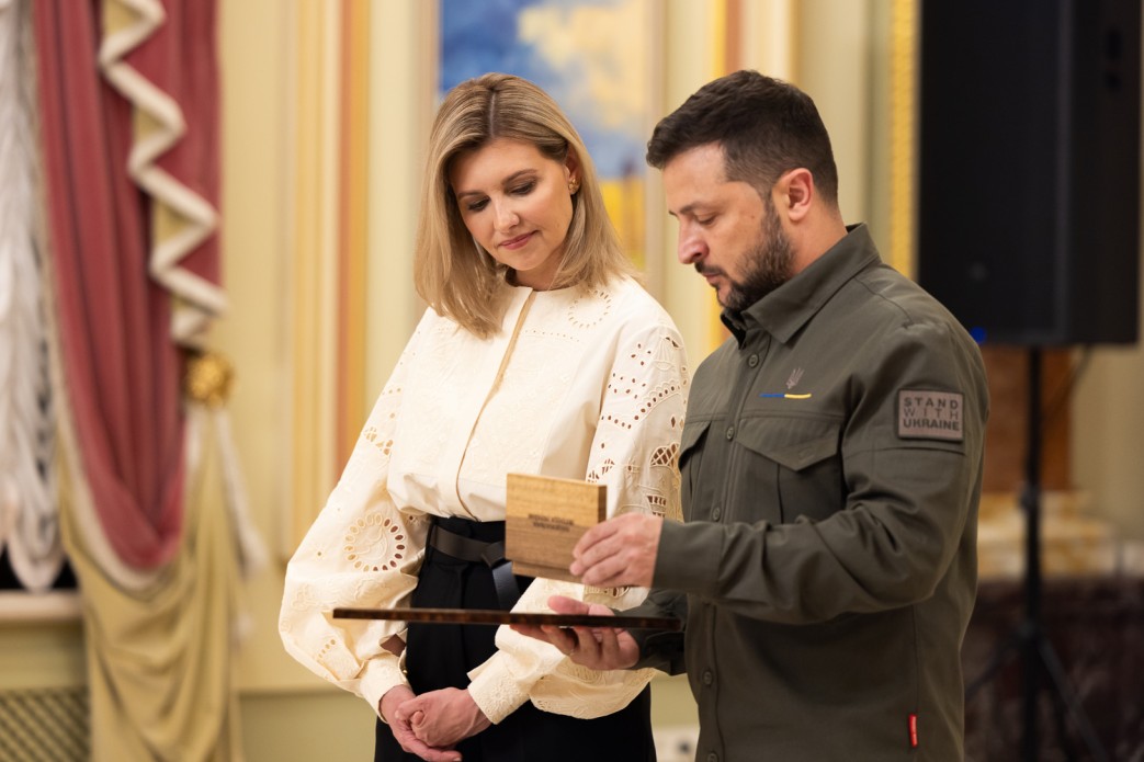 Президент України Володимир Зеленський і перша леді Олена Зеленська взяли участь у врученні відзнаки глави держави "Національна легенда України". Цього року її присудили вісьмом людям, деяким із них посмертно.