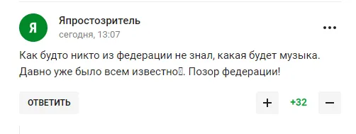 "Сумно все з державою, якщо вибір музики фігуристом - справа державної важливості", "І з якого часу справою державної важливості є музика до програми? Така реакція, ніби Петя хотів кататися під гімн України", "Ніби ніхто з федерації не знав , яка буде музика. Давно вже було всім відомо. Ганьба федерації!" - обурюються користувачі.
