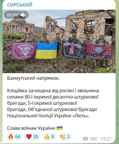 Заяву бійців бригади "Лють" підтвердив командувач Сухопутних військ ЗСУ генерал-полковник Олександр Сирський. Він зазначив, що село "зачищене від росіян та звільнене" силами трьох бригад.