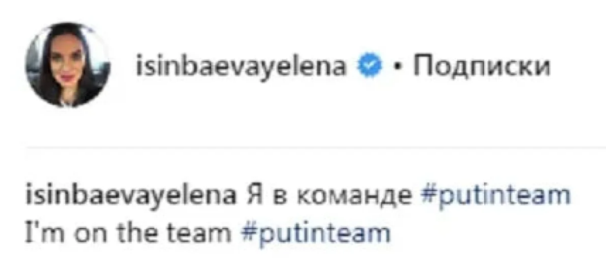 "Я в команді Putin Team", — написала тоді Ісінбаєва.