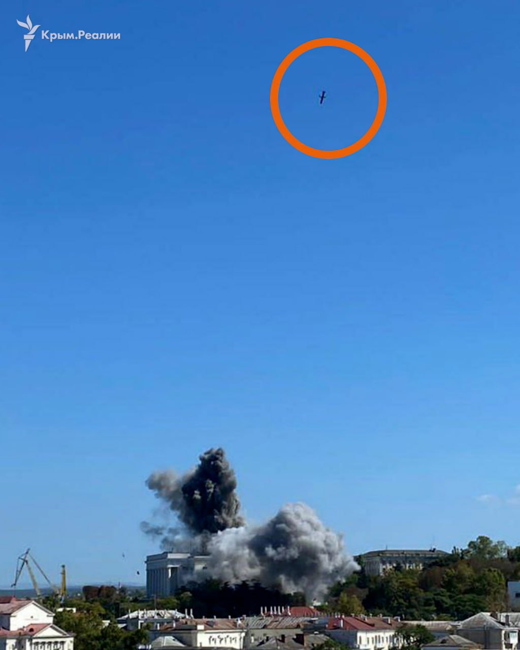 Те, що будівля штабу ЧФ РФ горить, а на неї пікірує друга ракета – вибух болотного газу.