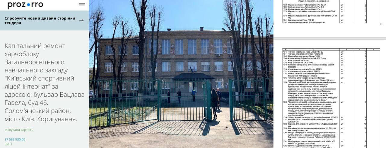 Київський спортивний ліцей планує за 37.5 мільйонів гривень зробити ремонт харчоблоку