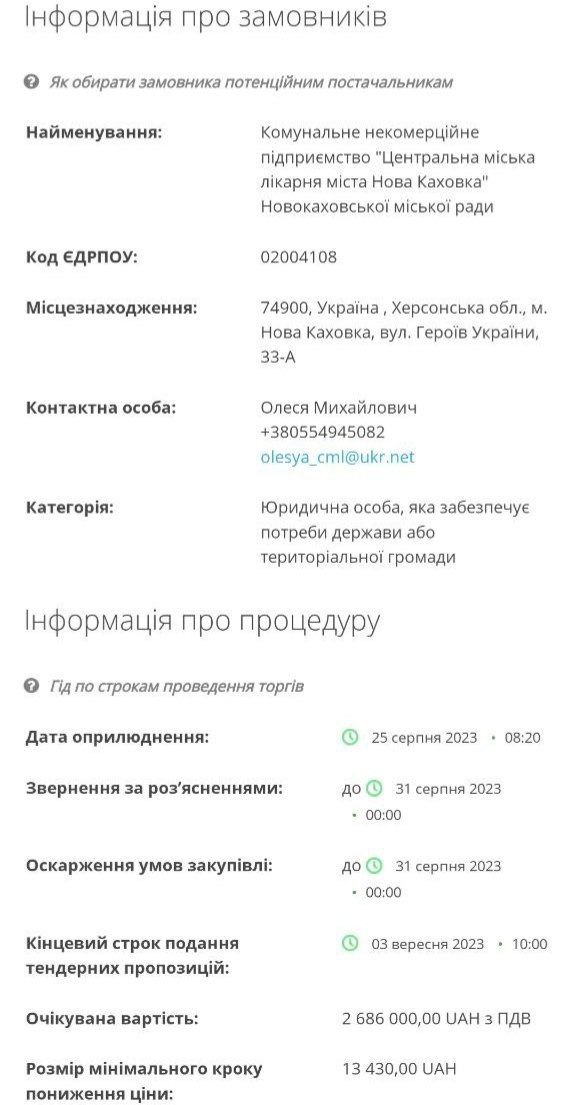 Міськрада Нової Каховки закупила через систему держзакупівель Prozorro апарат УЗД для центральної міської лікарні через півтора роки після початку окупації міста.
