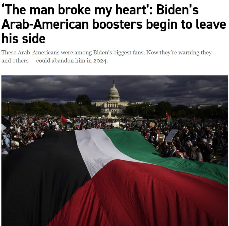 За її інформацією, з початку загострення на Близькому Сході Байден зіткнувся з гнівом багатьох американців арабського походження та мусульман через те, що він не виявив однакову реакцію до обох сторін конфлікту та не показав здатності добиватися деескалації конфлікту.
