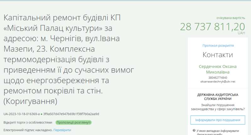 У тендері на 28,7 мільйонів перемогла компанія ТОВ “Фірма «МЖК-Сервіс»”, яка проводила роботи у попередніх частинах капітального ремонту Міського палацу культури.