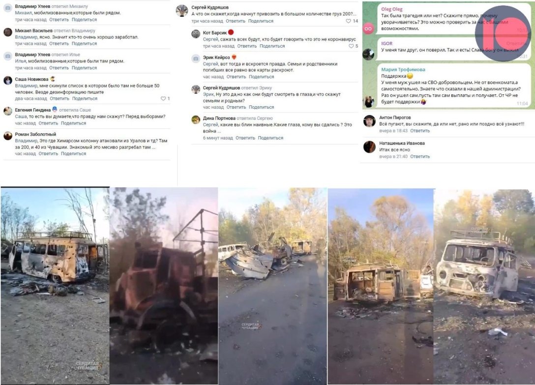 Влада Чувашії намагається приховати масову загибель жителів республіки. Військкомат регіону погрожував відповідальністю за поширення недостовірної інформації. Глава регіону Олег Ніколаєв заявив , що "на фронті можливо все", але звинуватив у поширенні брехні українські телеграм-канали.