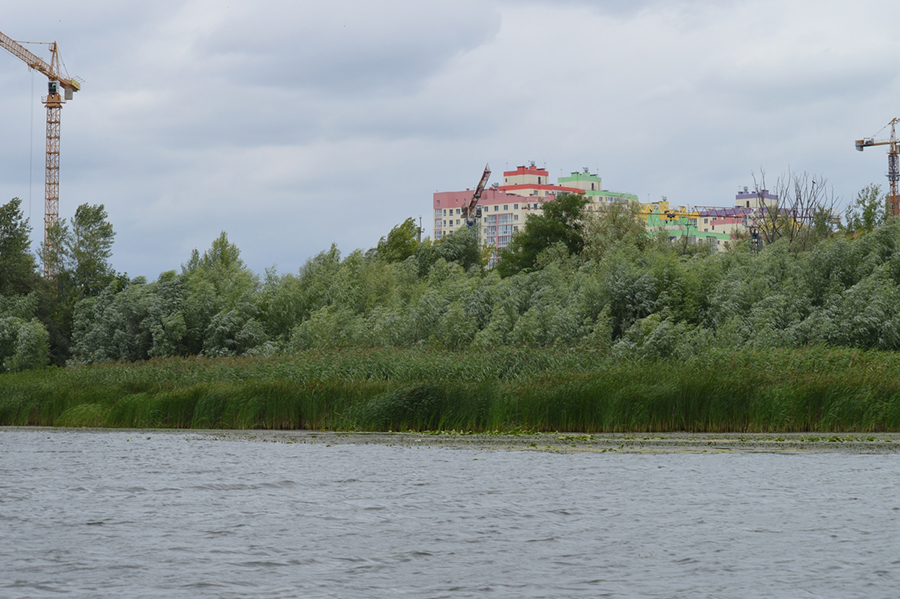 Найскандальніша забудова прибережної смуги останніх років — будівництво житлового комплексу «Сонячної рів’єри». Три елітні будинки підходять до самого Дніпра.