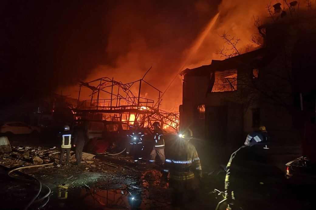 "Внаслідок одного з влучань зайнялася СТО: палали гаражі та автівки. Частково зруйнована двоповерхова будівля поруч. Вона не була житловою, але всередині передбачені спальні місця для тимчасового перебування людей, які виїхали з окупованих Росією територій. Зараз рятувальники розбирають завали", – повідомив Чубенко.