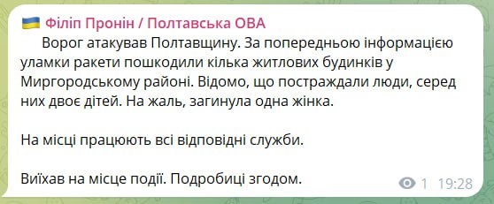 У Миргородському районі є жертви та постраждалі, повідомляє глава Полтавської ОВА.