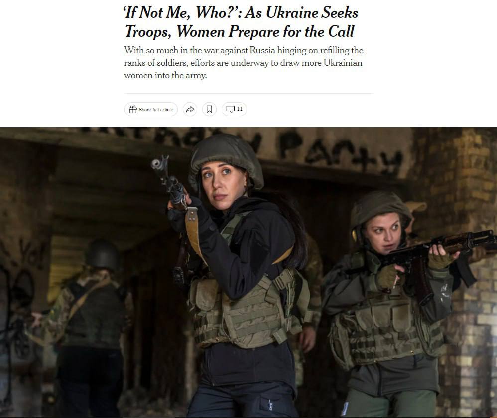 «Хоча Україна має перевагу від подарованих Заходом озброєнь, вона покладається лише на власне населення як резерв для поповнення сил, а в Росії воно приблизно втричі більше. Оскільки так багато залежить від поповнення рядів, робляться зусилля щодо залучення більшої кількості українських жінок до армії», – пояснює видання.