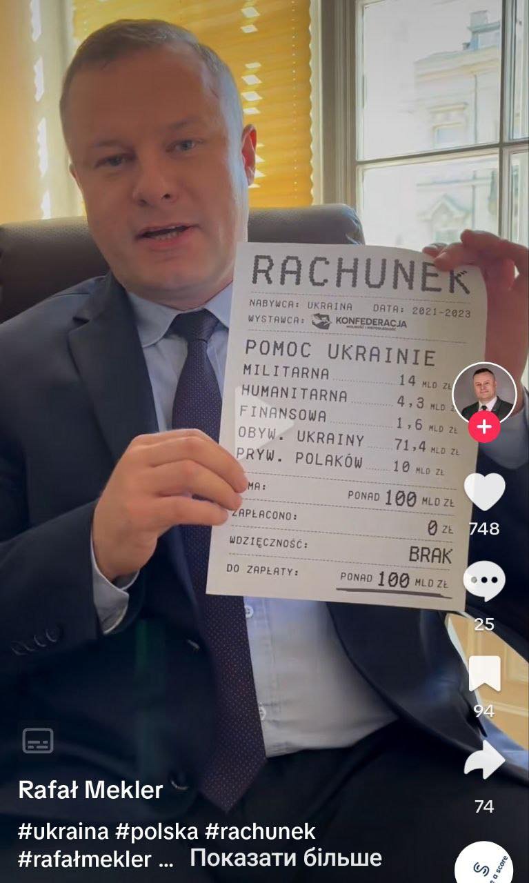 Новини зі світу божевільних. Лідер акції з блокування україно-польського кордону радикал Рафаель Меклер виставляє Україні рахунки за підтримку у війні. 100 мільярдів злотих.