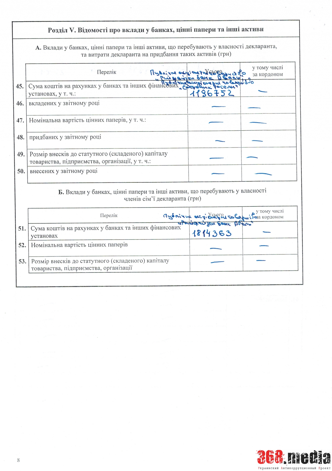 На содержание своего имущества в 2014 году они не потратили ни копейки. При этом, согласно декларации 2012 года, семья потратила 13 тыс. гривен, хотя их имущественное положение в части недвижимости и автопарка не изменилось.