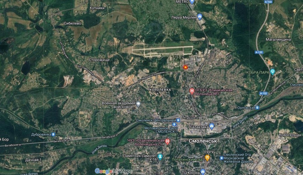 На Google maps можна побачити, що авіазавод розташовано на північній околиці Смоленська — щоб дістатись до нього, доведеться облетіти місто зі сходу чи з заходу, або пролетіти навпростець. Орієнтовна відстань до кордону України — близько 300 км.