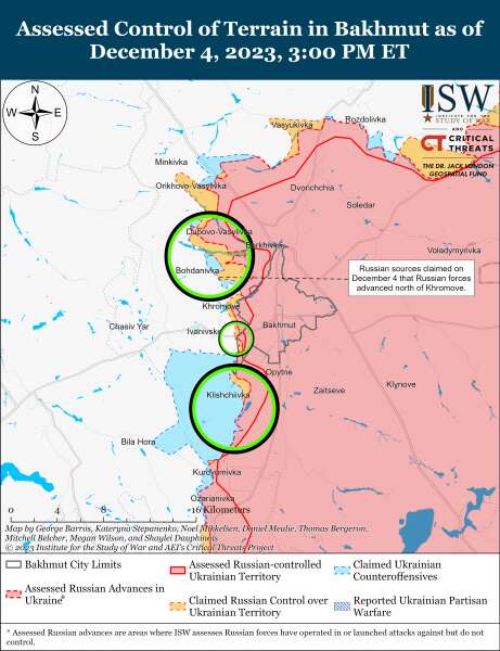 Російські війська вели наступальні операції вздовж лінії Куп’янськ-Сватове-Кремінна, але не досягли жодних підтверджених успіхів 4 грудня.