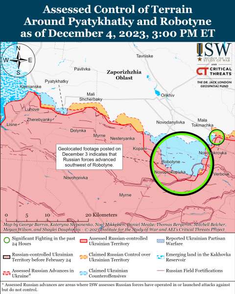 Російські війська продовжували наземні атаки в районі кордону Донецько-Запорізької областей, але 4 грудня не мали жодних успіхів.