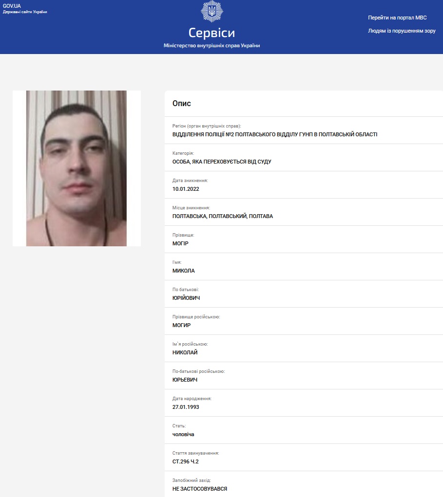 Коли справу достойників скерували до суду, стало відомо - потерпілим у справі про замах на "Сокола" проходить геть не він, а лише Микола Могір, що від січня 2022 року перебуває в розшуку за наслідками скоєння хуліганського вчинку (під час розгляду справи по суті чоловік не був допитаний).