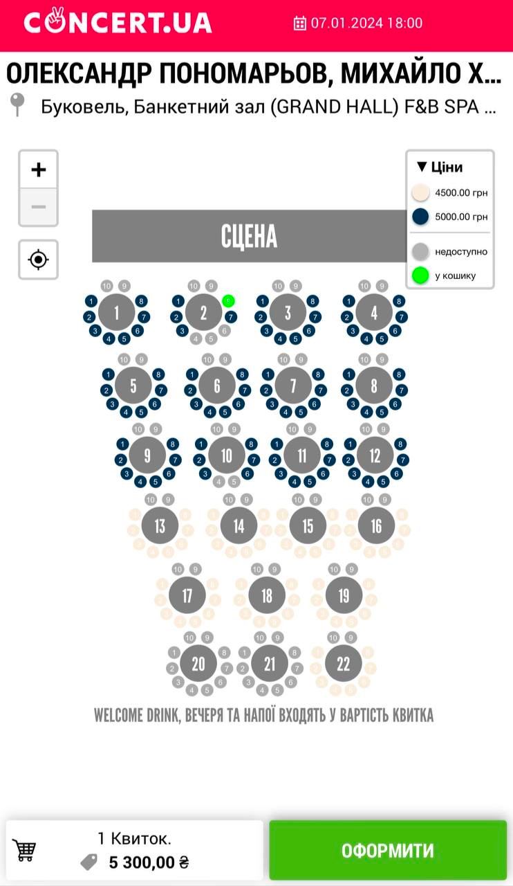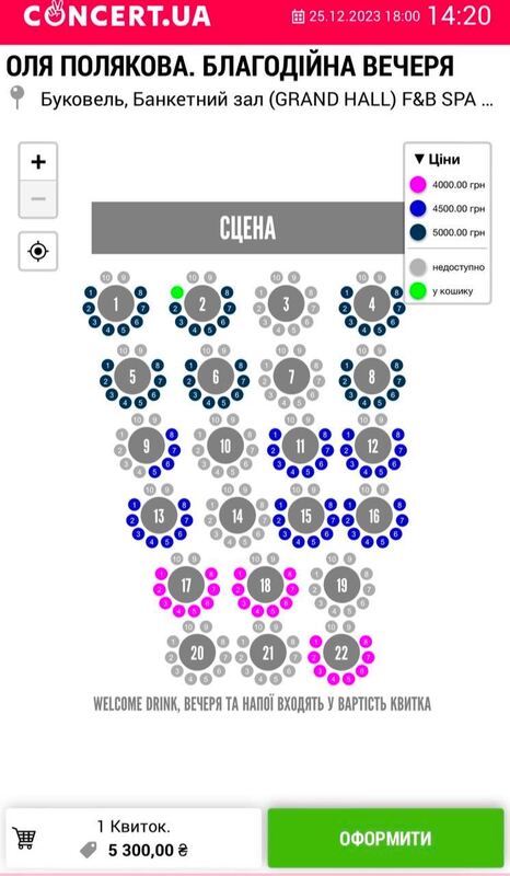 Так, наприклад, вартість одного квитка на концерт Ольги Полякової коливається від 4000 до 5300 грн., залежно від розташування столика до сцени.