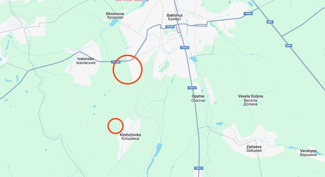"В ролику показано дещо інше місце. А саме — західна околиця Бахмута, кілометрів за 3–4 від Кліщіївки на північ. Що досить легко визначається у відео. У всякому разі, це точно не Кліщіївка, там такої великої та рівної забудови немає ніде. Невеликий локальний бій на околиці Бахмута жодного значення для фронту не має, а ось за висоту на захід від Кліщіївки справді йдуть важливі бої", — ідеться в повідомленні.