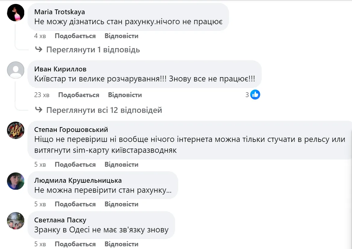 "Ну що знову не так? Не працює ні інтернет, ні мобільний зв’язок!", "Дорогі співвітчизники! Ви зараз нічого дізнатись не зможете, бо мережа "Київстар" знову лягла у всій країні", "Не працює *111# і додаток не працює. Як дізнатися баланс?", "Знову все не працює!" – пишуть у Мережі українці.