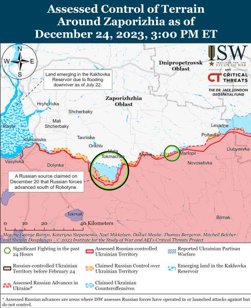 Повідомляється, що 24 грудня російські та українські війська не проводили наступальних дій у районі кордону Донецько-Запорізької областей.